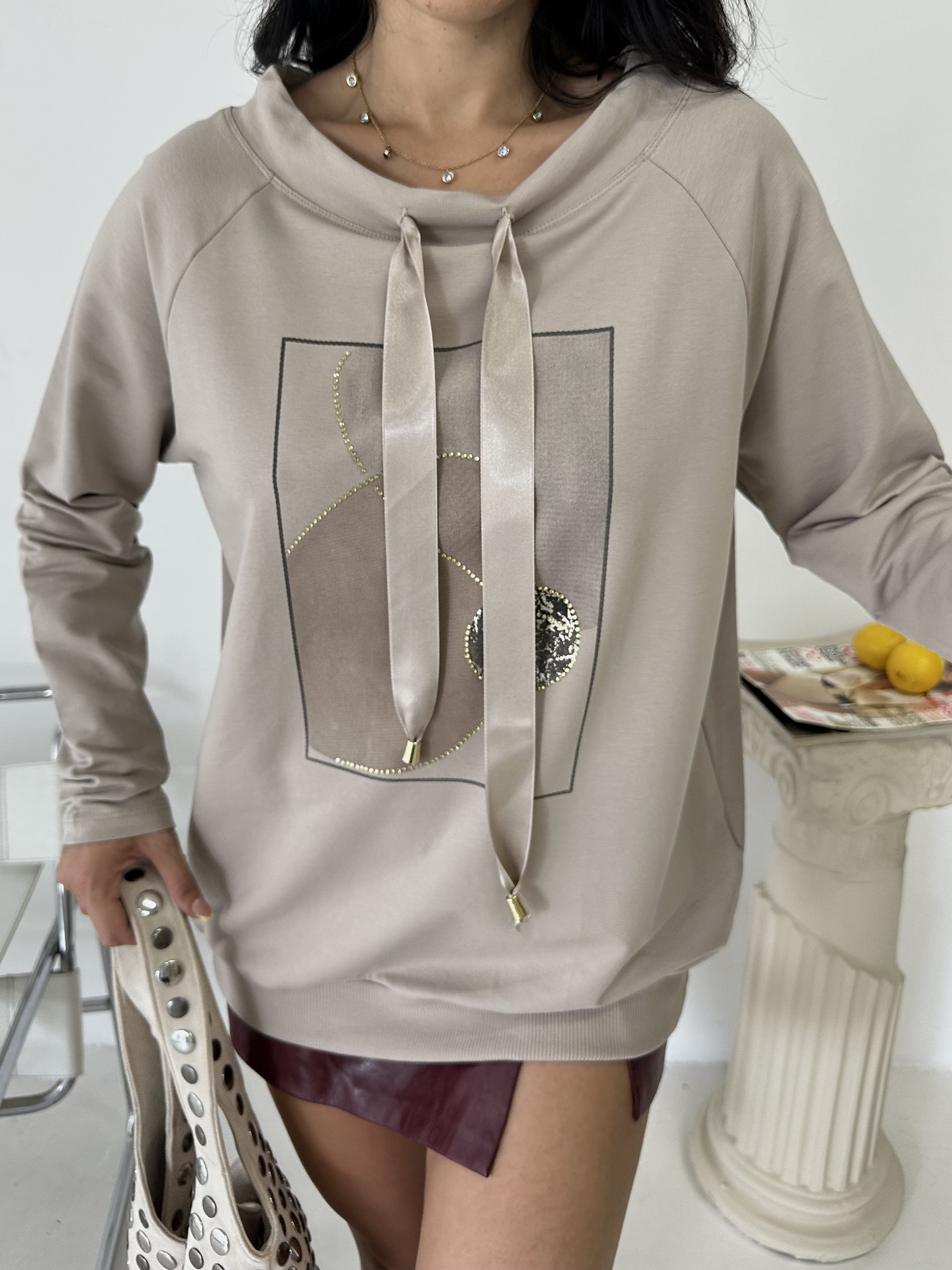 Nadruk: geometryczny wzór z delikatnymi zdobieniami (złote detale, połyskujące elementy)